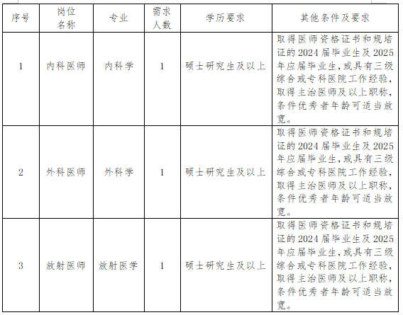 (一)内科医师岗位,1名;